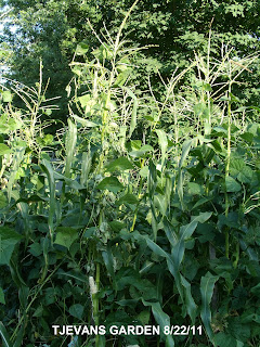 The Pole Beans are to climb up the corn stalk next to it. They provide enrichment's in the soil the other crop needs, and the squash below is to help prevent weeds. WE found that we will never do this again. IT was a MESS. The beans grew to other stalks making it impossible to move through the stalks easily. The beans drew Japanese Beetles to the corn. The Squash never received enough sun and it definitely did not shield the weeds.